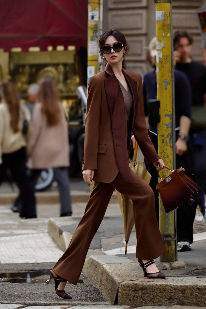 唐嫣的棕色系西服套装穿搭,将“复古摩登”造型演绎到了教科书级别。这款穿搭完美融合了“老钱风”和“都市大女主”的气质,每一处细节都彰显着:经典,才是最高级的时尚。