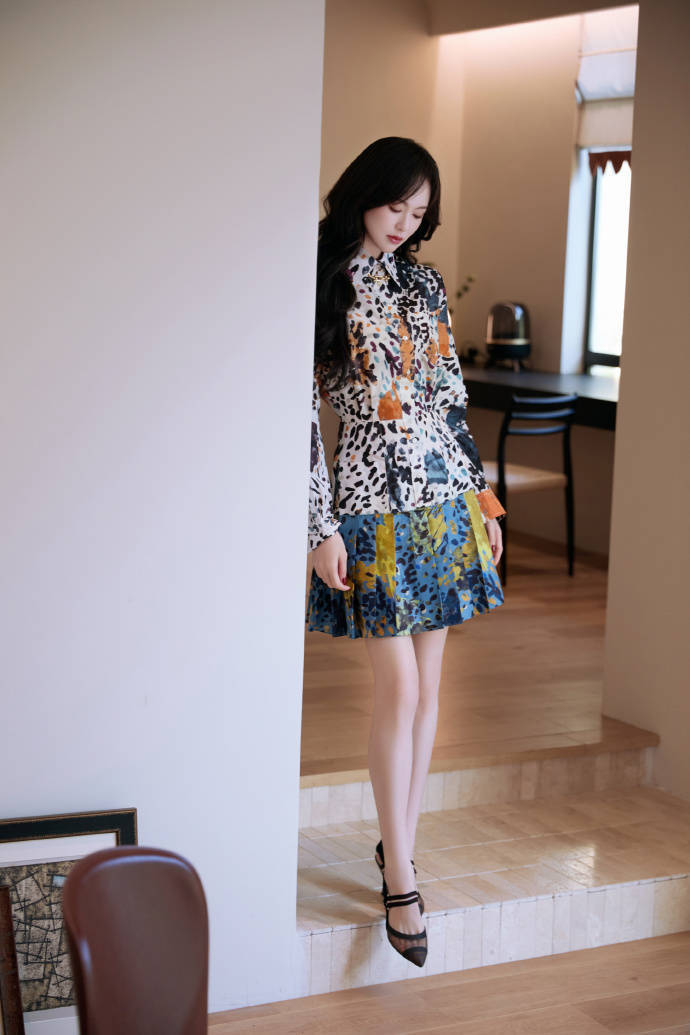 在单品搭配上,上身衬衫的宫廷风领口装饰是文艺复兴复古的灵魂,但材质轻盈,避免了厚重感。下身百褶短裙长度在膝盖以上,是“复古学院风”的关键单品,格纹选择降低了稚气,增加了文艺气息。唐嫣的这款造型巧妙运用复古元素,并非简单复刻,而是通过现代审美的视角对经典元素进行了“翻译”。
